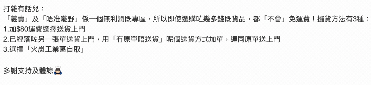 全店,買夠$450(折實後)免費送上門,仲可以上門回收(義賣、唔准嘥嘢及雪糕除外),不足$450另加$50運費