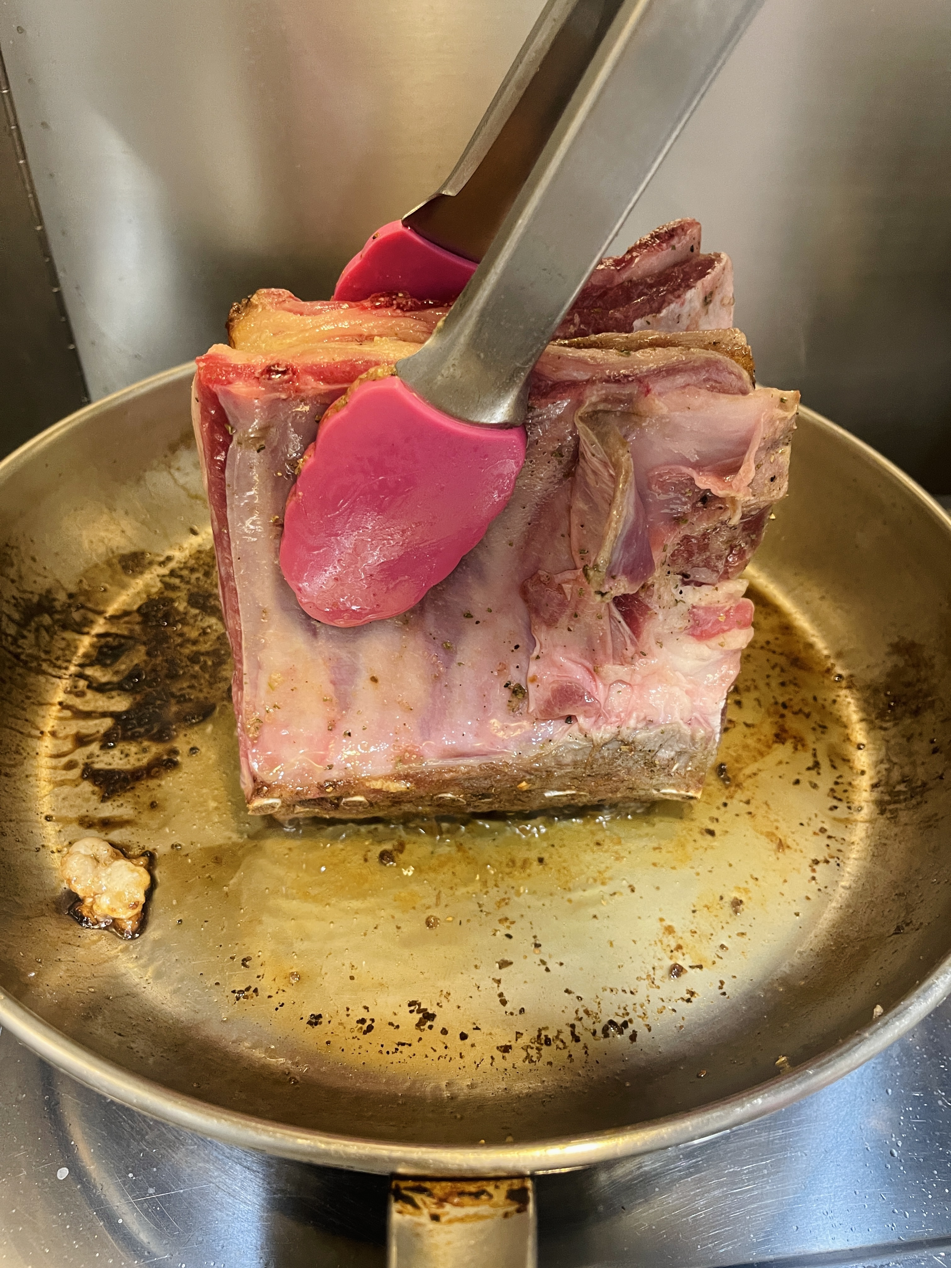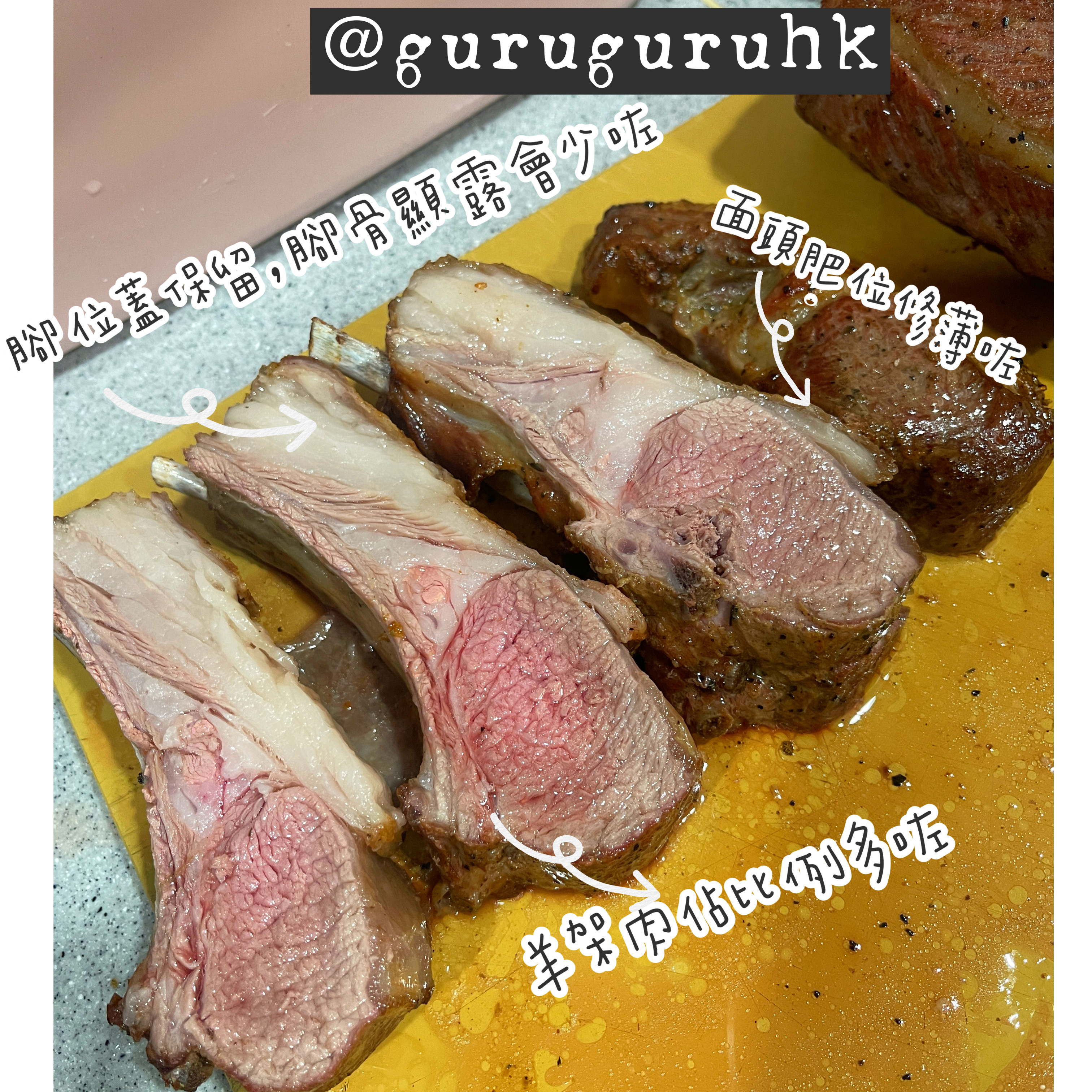 我自己其實都幾鍾意新嘅做法😼,因為範圍大左平面位平咗,更加容易幫羊架上色,平滑嘅地方更加多!更加容易煎香,鎖死肉汁😽