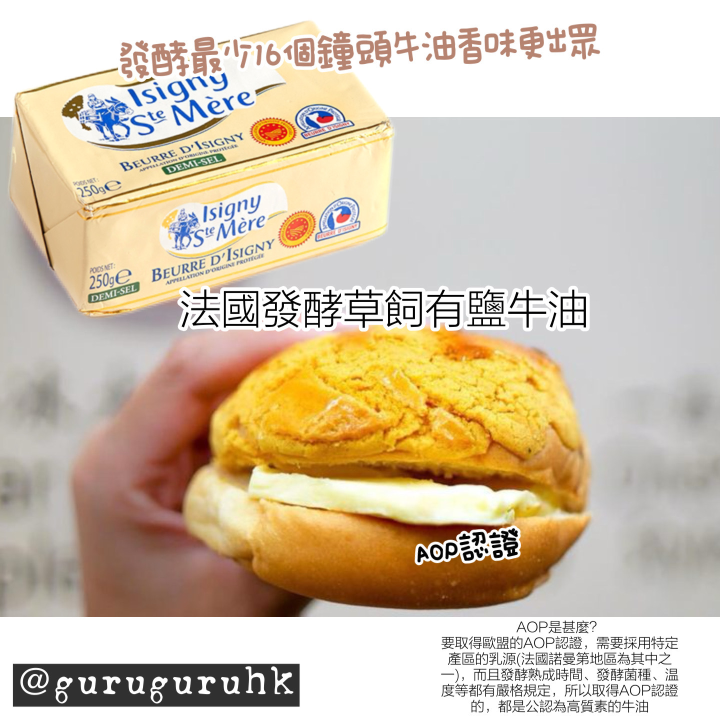 屬於草飼牛油,用傳統方式製成,發酵熟成16至18小時,擁有獨特的牛奶香甜味,入口卻不覺膩