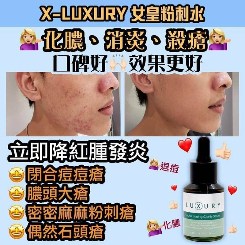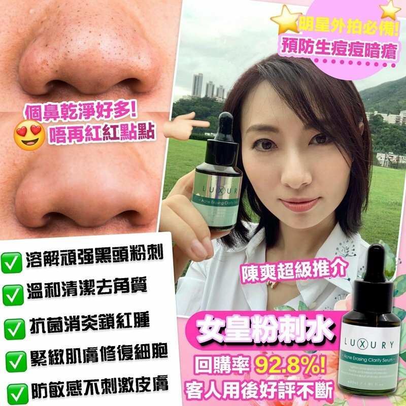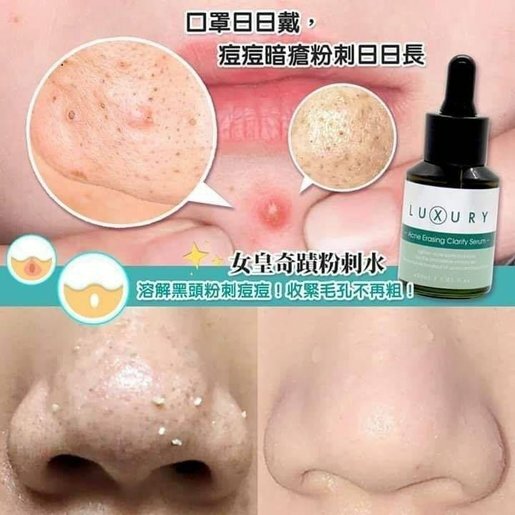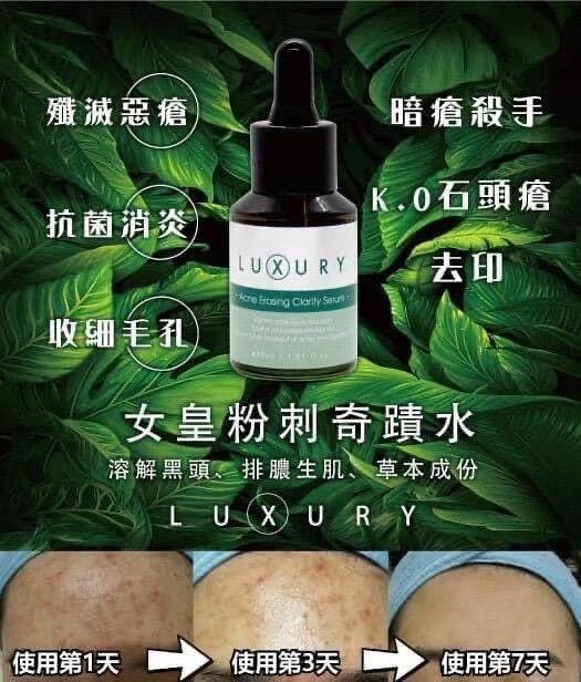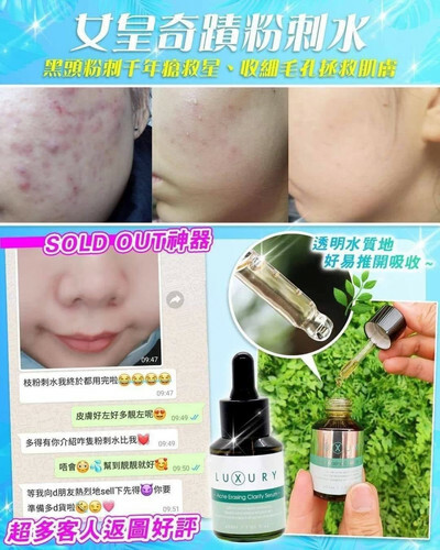 X Luxury 奇蹟粉刺水超好用,誠意推介,我自己都有用開,評價高,明星都超級愛,令到你嘅粉刺黑頭即刻有奇蹟嘅出現!用完之後,黑頭粉刺自己走出黎,等於做咗一個幾百至一千蚊嘅深層清潔Facial一樣!仲可以令到你啲毛孔即刻變返柔細!