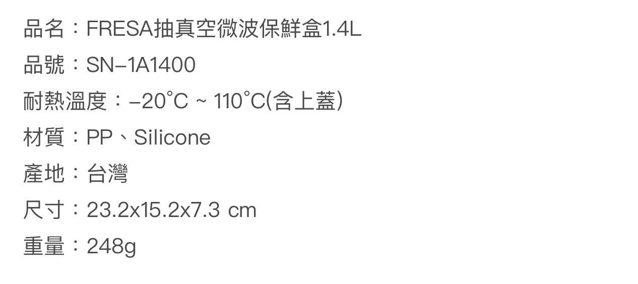 台灣FRESA 免開蓋微波真空保鮮盒 1400ml/1.4L