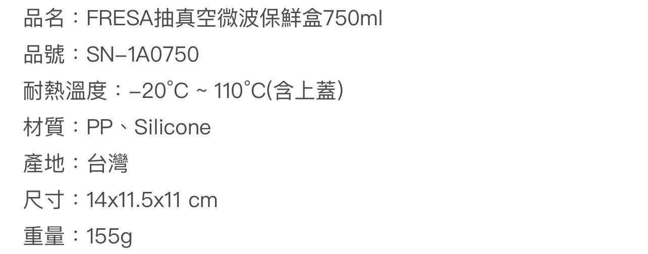台灣FRESA 免開蓋微波真空保鮮盒750mL