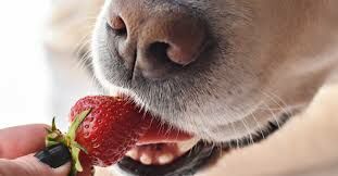 草莓可以偶爾當作狗的健康點心享用!草莓含有抗氧化劑、纖維、維他命 B1、 B6、 C、 K、葉酸、鎂、鉀、碘和奧米加-3 脂肪酸。抗氧化劑有助於保護細胞免受自由基造成的損傷,同時也支援狗的整體健康和幸福感,可能還能增強免疫力。此外草莓中含有一種酵素,可以幫助狗的牙齒變得更白。