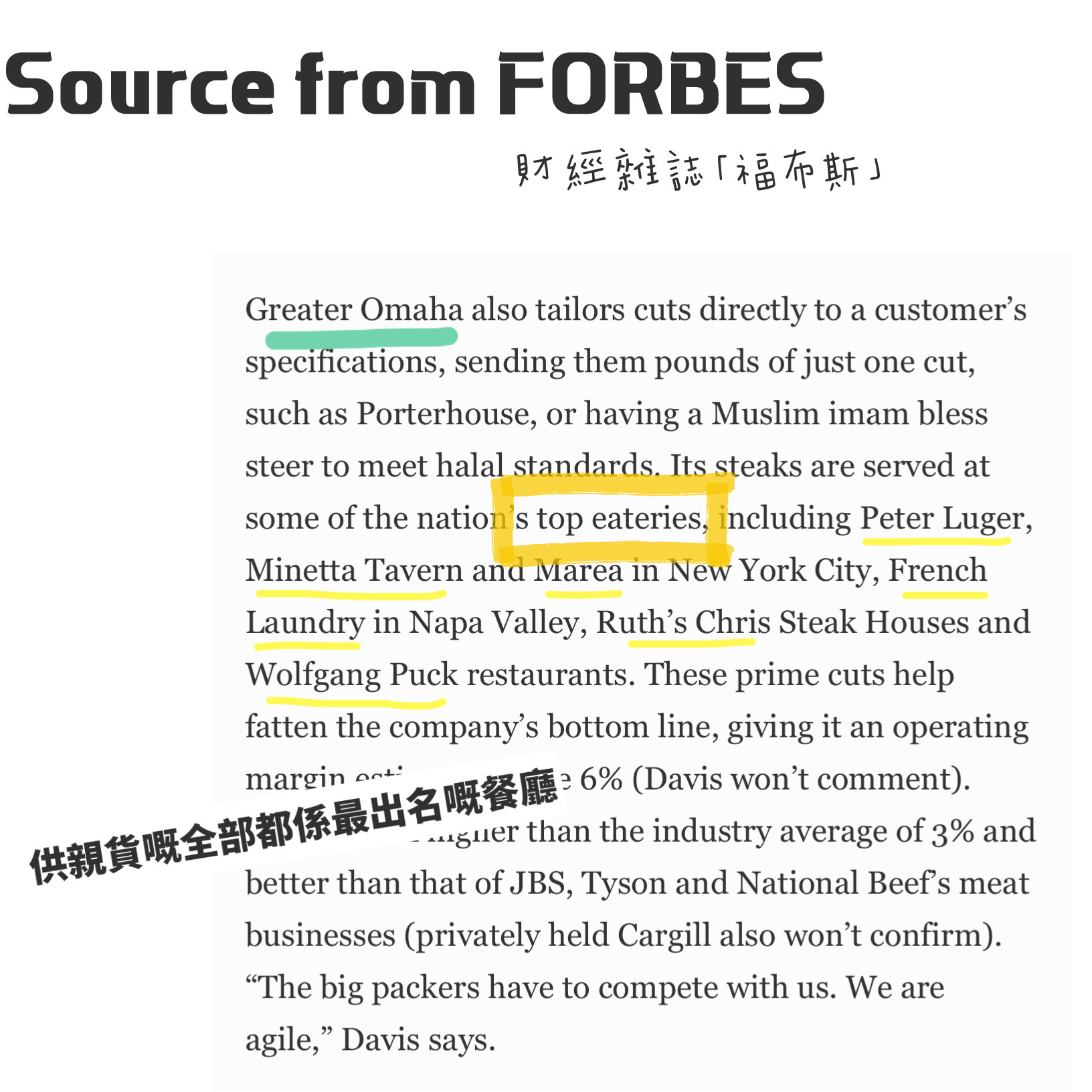 咁究竟咁出名嘅Peter Luger, 仲有大名頂頂嘅Ruth Chris 喺美國都係用上Greater Omaha 嘅牛