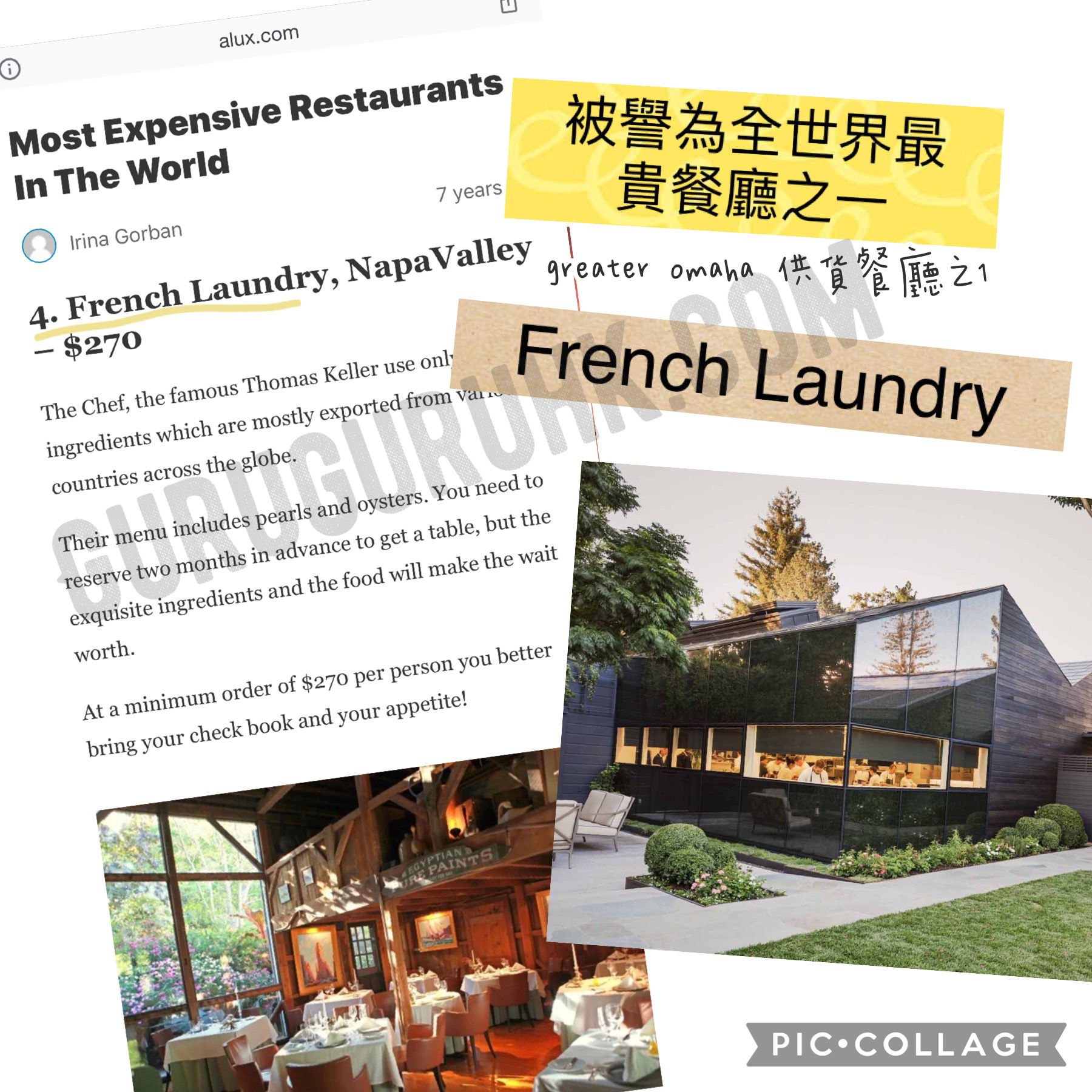 其中一間餐廳被譽為全世界最貴餐廳之一--french laundry