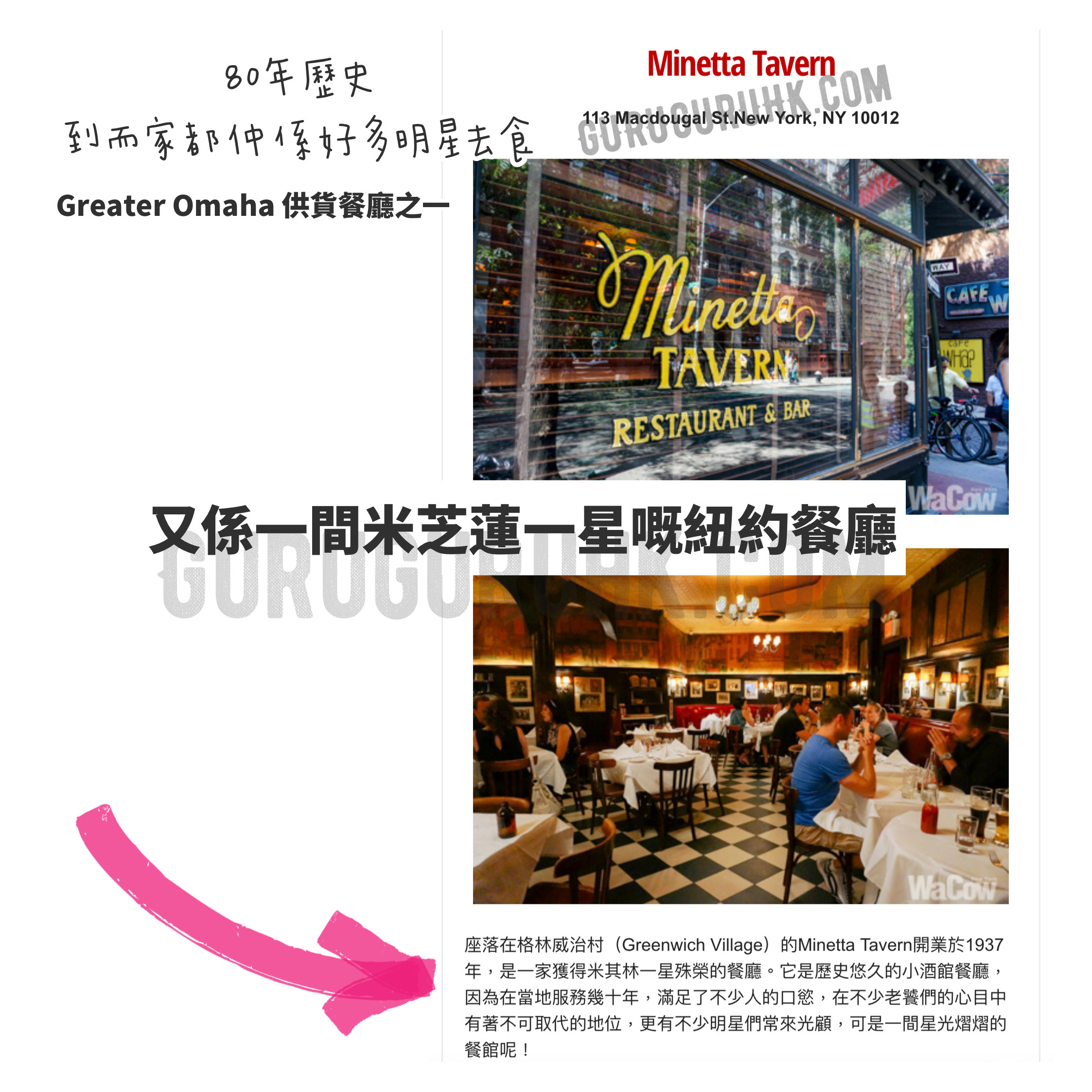 另一間就係明星成日去嘅餐廳,亦都係米芝蓮一星嘅紐約80年歷史老餐廳--minetta tavern