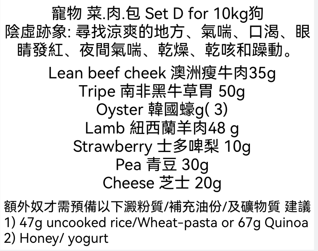 每一包適合10 kg嘅狗仔1日份量使用,可以根據狗仔嘅重量自己加減!