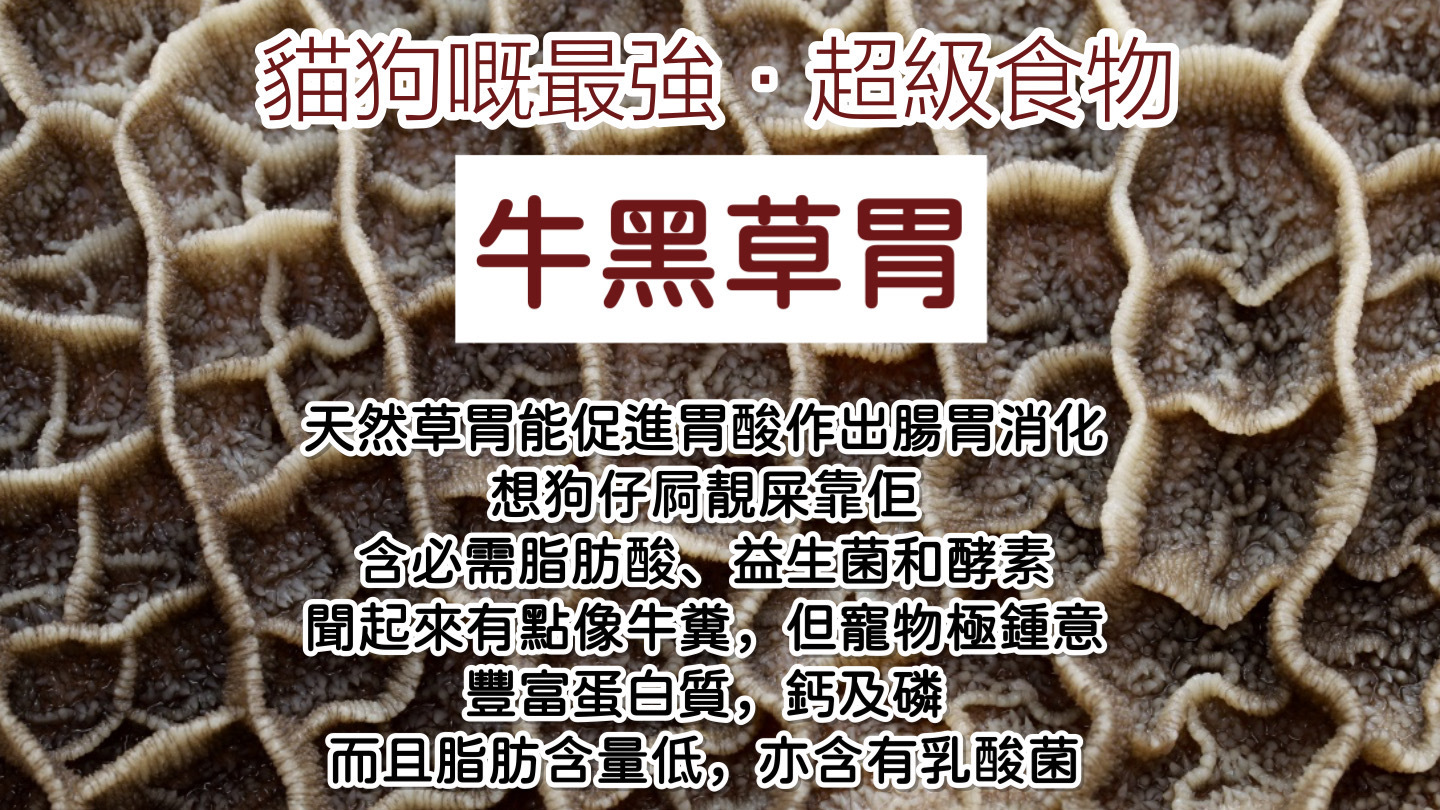 外國更有文章指出這種食物能令年老的動物回復活力充沛、令有皮膚問題的毛孩長出一身亮麗的披毛。毛爸毛媽,你知道是什麼食物嗎? 那就是牛胃的一部份--草胃