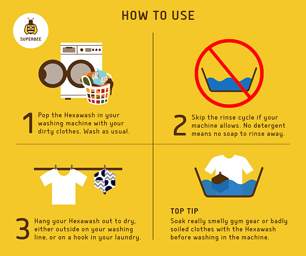 使用SuperBee的Hexawash,您可以得到新鮮,乾淨的衣物,而無需使用任何洗滌劑或浪費性的塑料包裝。它使用鎂來確保您的衣服比以往更乾淨,更新鮮。
