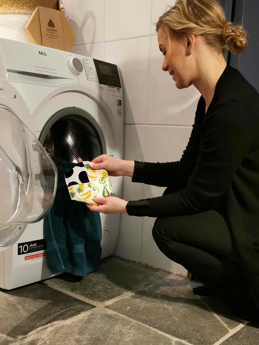 1. 只需將Hexawash放入滾筒洗衣機中,然後像往常一樣洗衣服即可。您可以跳過漂洗環節,因為沒有洗滌劑殘留需要漂洗掉。