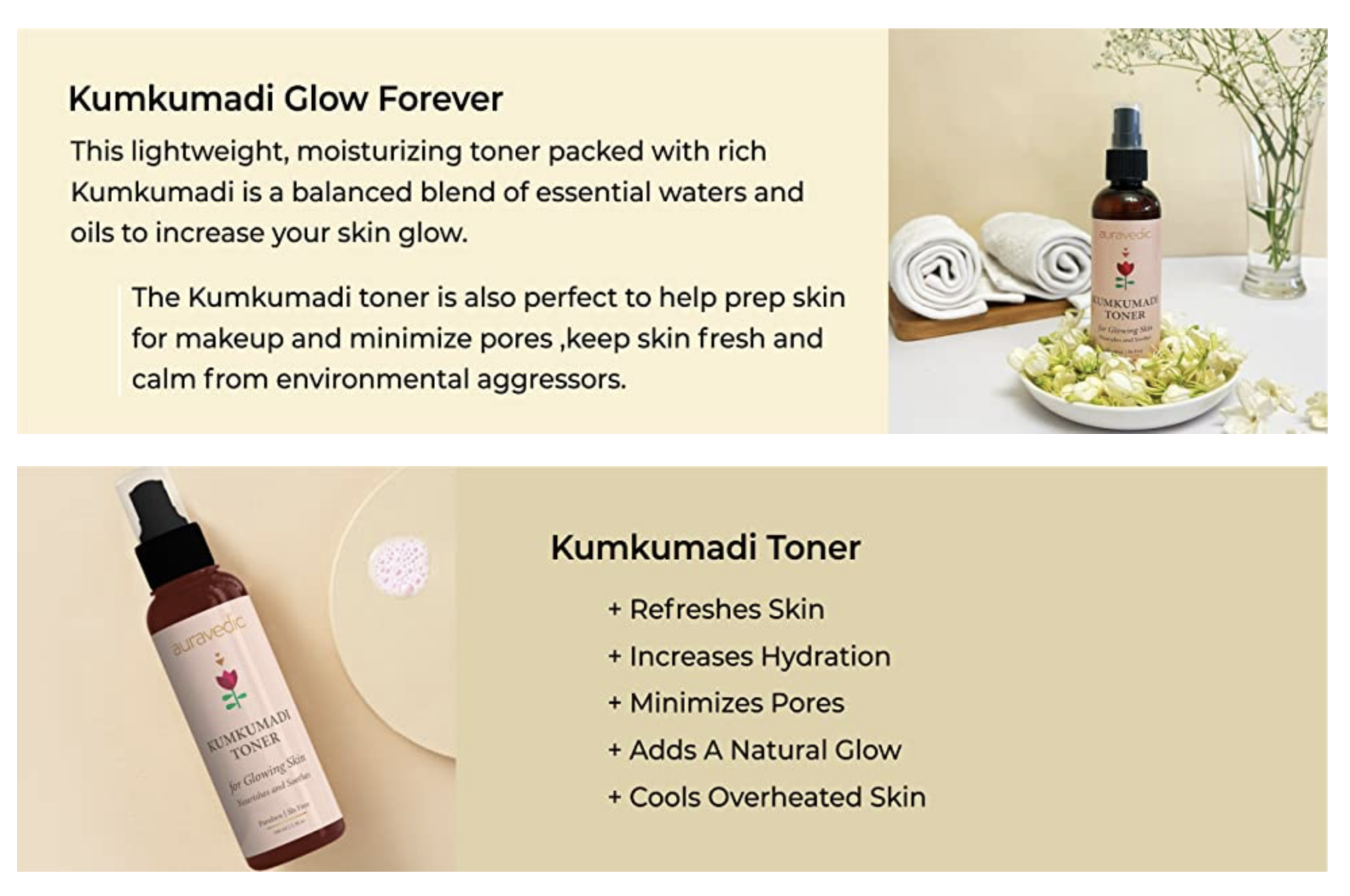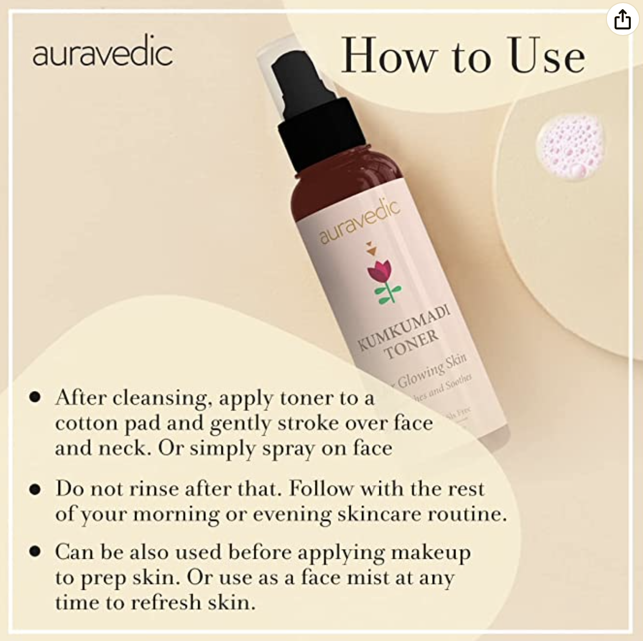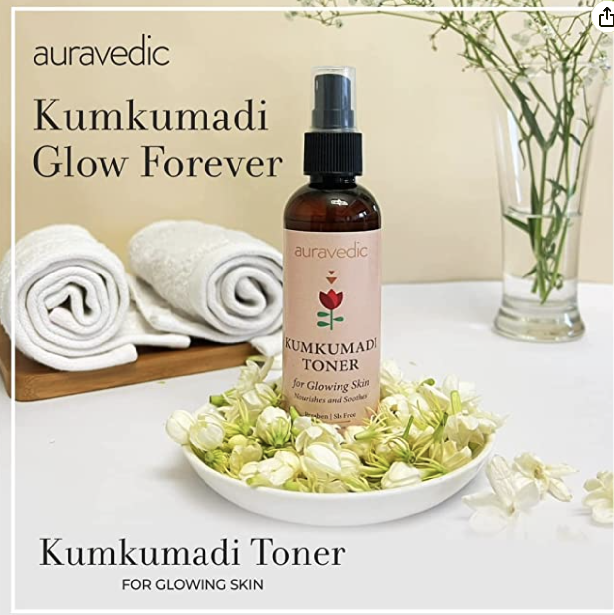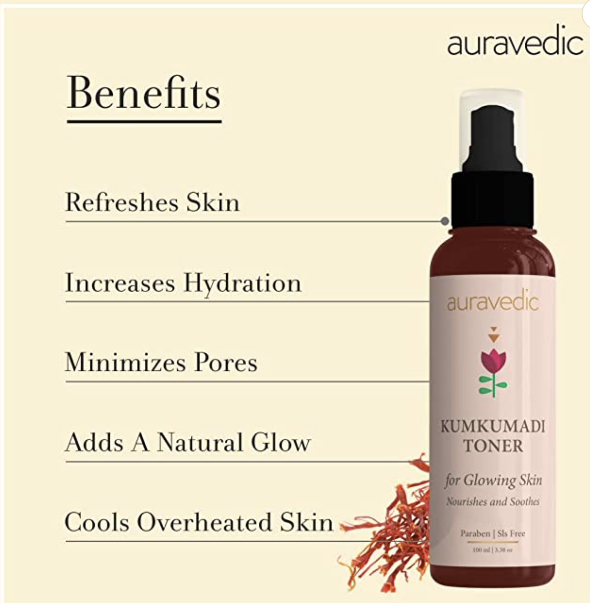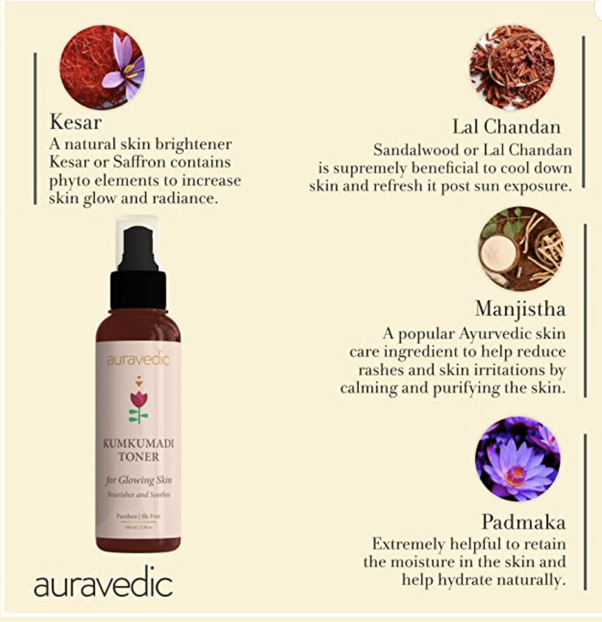 The Kumkumadi toner is also perfect to help prep skin for makeup and minimize pores ,keep skin fresh and calm from environmental aggressors.