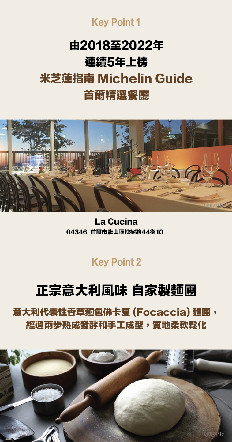 米芝蓮推薦餐廳 LA CUCINA 作為韓國首家正統意大利餐廳,30年來一直深受韓國人民喜愛。