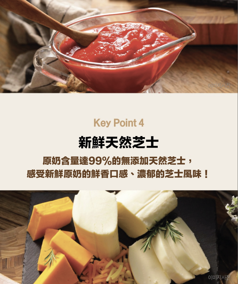 • 嚴選優質意大利食材,使用新鮮天然芝士,感受新鮮原奶的鮮香口感、濃郁的芝士風味!