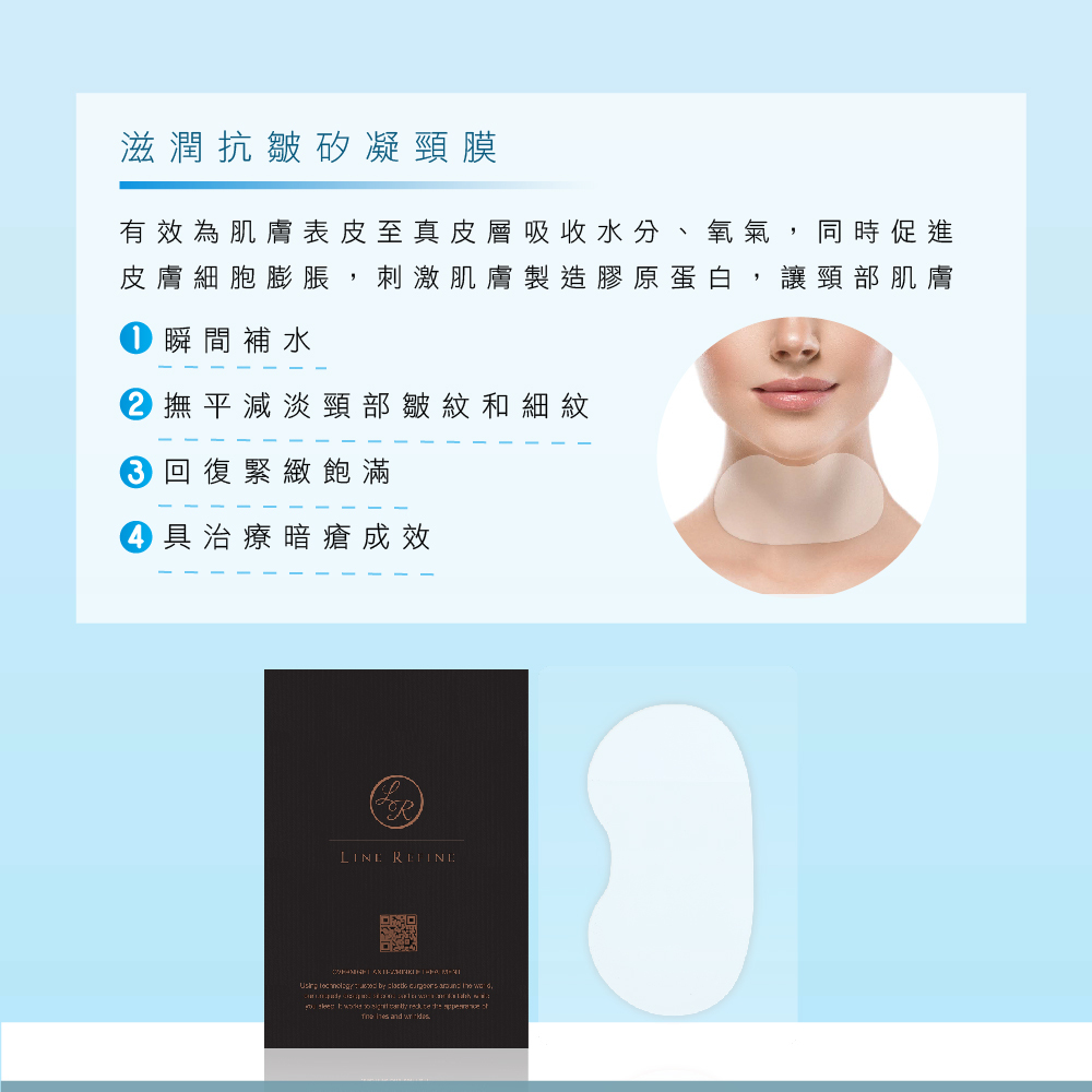 LINE REFINE矽凝頸膜採用達醫療級Silpuranier(矽)製成,不含激素及添加劑,極親和人體肌膚。Silpuranier由外科醫生沿用至今超過30年,專門治療因燒傷而造成的疤痕。加上其抗氧化及保濕度高的功能,有利於肌膚促進自我修復功能。