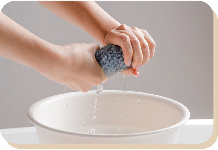 A7:加入少量中性清潔劑高溫水煮10分鐘或熱水浸泡30分鐘後清洗乾淨(勿加入小蘇打粉、過碳酸鈉,以免抗菌、瞬吸功能消失)。詳細說明請點選 「深入保養與清潔」看詳細介紹唷!