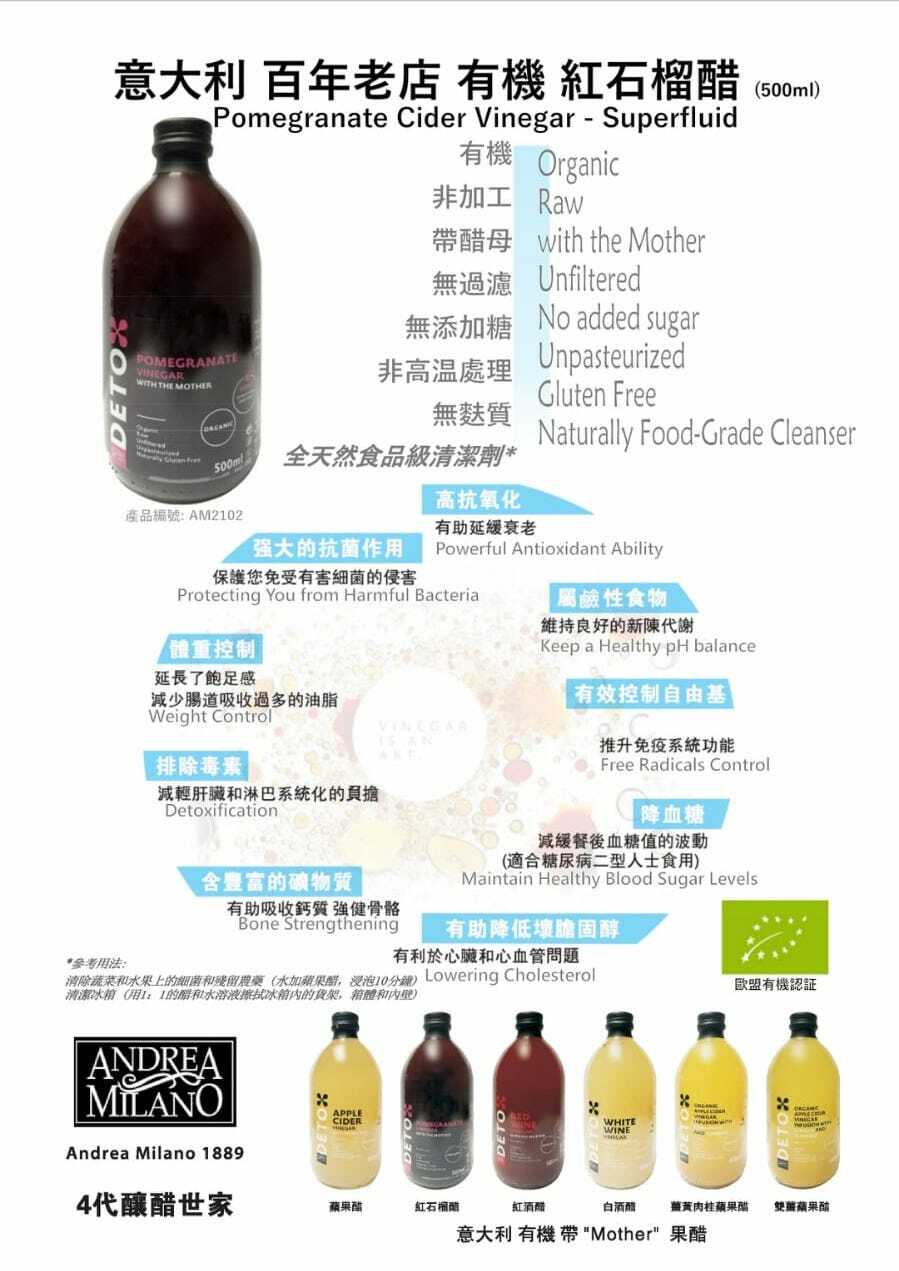 意大利 Deto 有機紅石榴醋 500ml