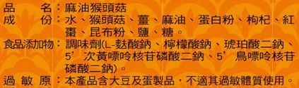 台灣 旺意香 麻油猴頭菇(蛋素)700g (零下18度)
