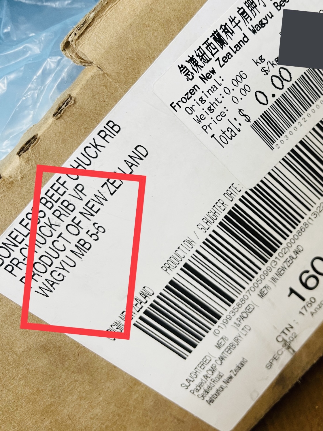 Southern Station Wagyu 包裝上有個紐西蘭政府認證嘅logo