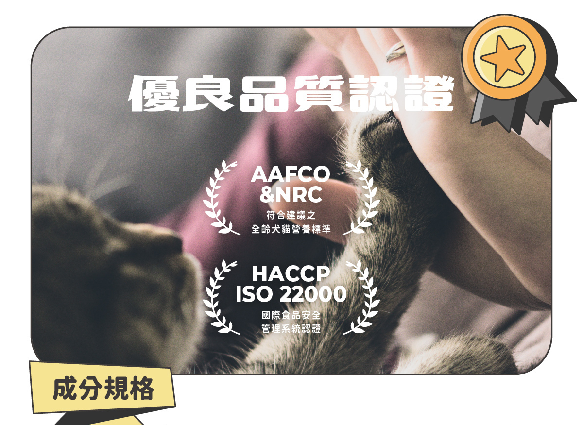 ◆ 符合AAFCO&NRC建議之營養標準,適合全齡貓咪食用