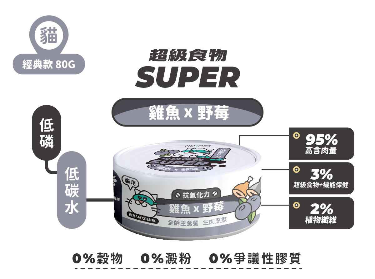 ◆ 適合貓貓的黃金比例:95%動物性食材+2%植物性食材+3%必需營養素&超級食物