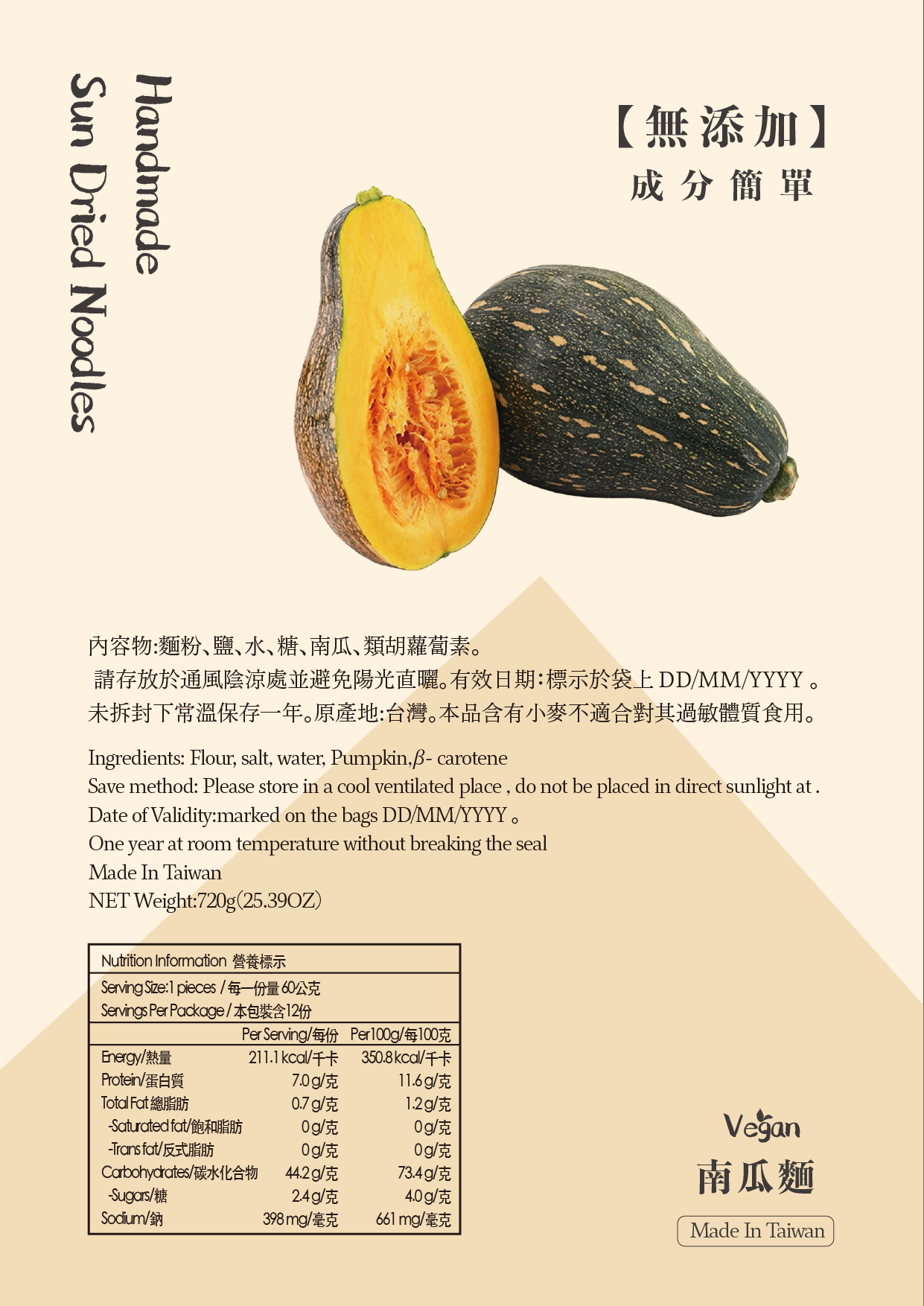 台灣 台客波士 養生日曬麵 南瓜麵 600g