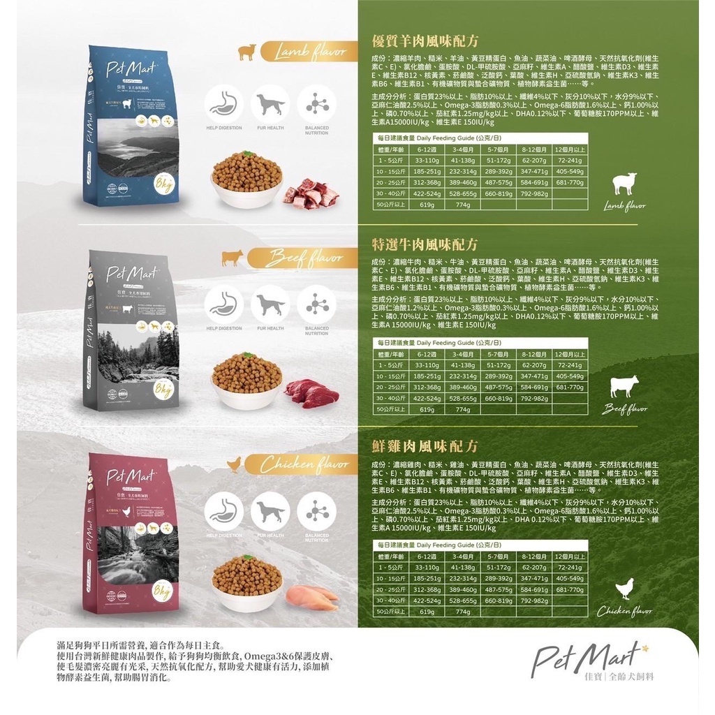 使用台灣新鮮健康肉品製作,給子狗狗均衡飲食,Omega 3 and 6,保護皮毛、使毛髮濃密亮麗有光采,天然抗氧化配方。