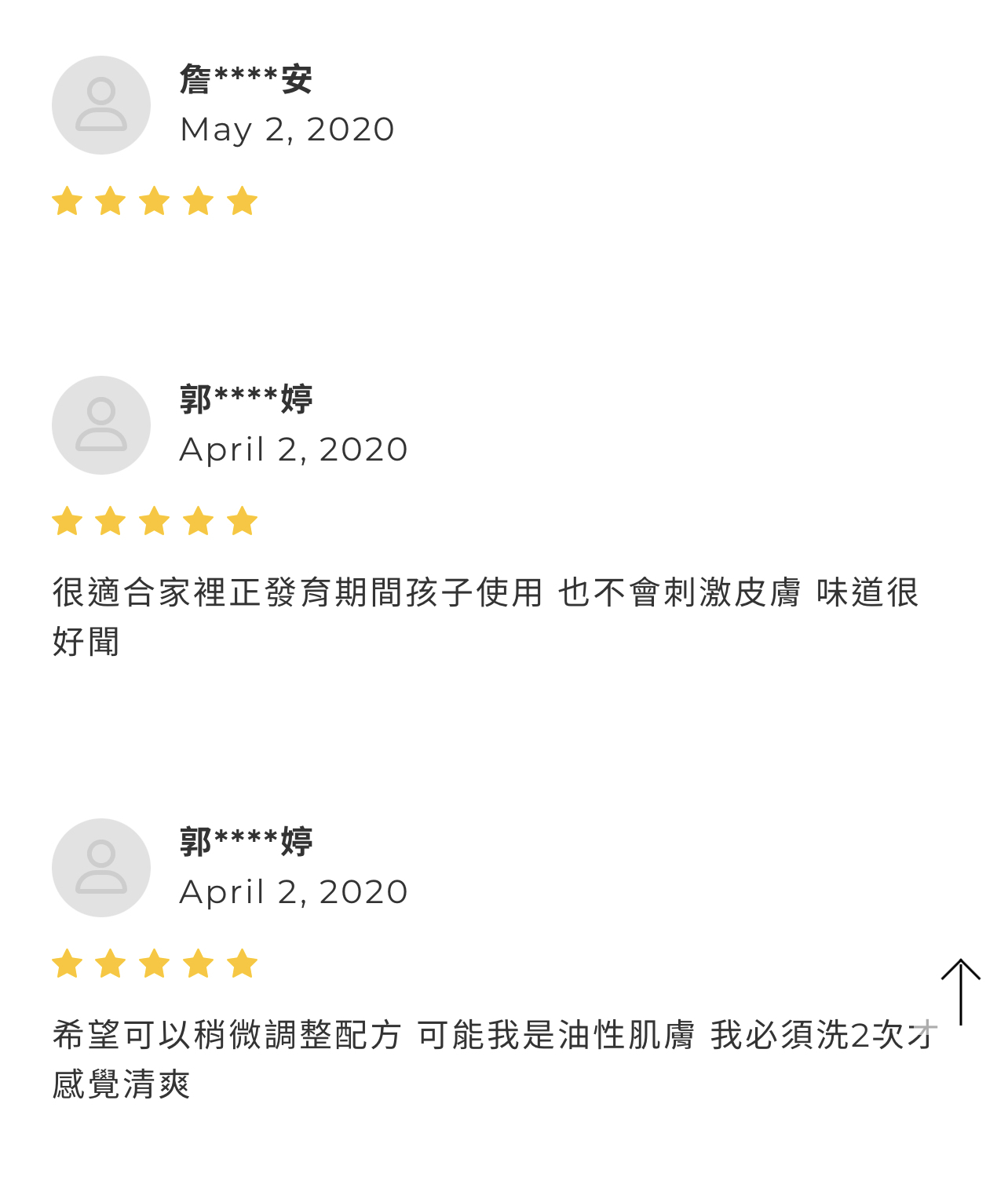 全成分:淨水、椰油醯胺丙基甜菜鹼(椰子油起泡劑)、C8-16烷基糖苷(葡萄糖苷起泡劑)、r-PGA聚麩胺酸鈉(納豆萃取)、蒸餾木醋液、佛手柑精油、馬鬱蘭精油、山梨酸鉀(<0.2g/Kg)
